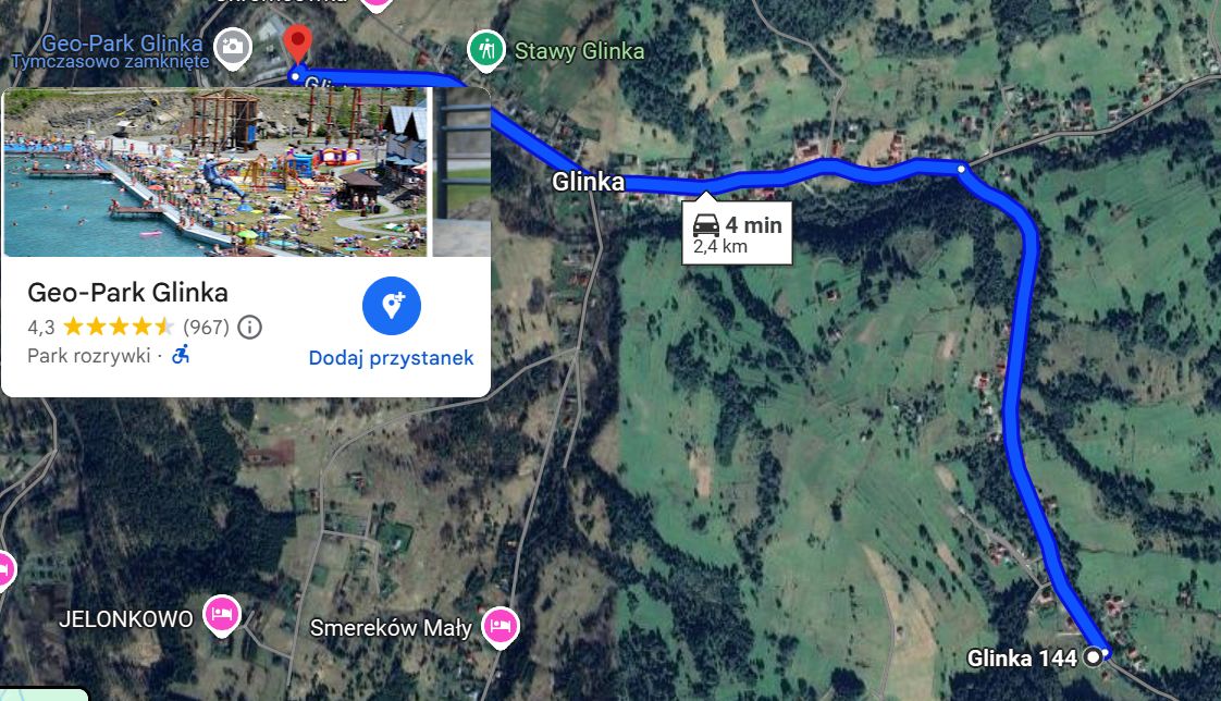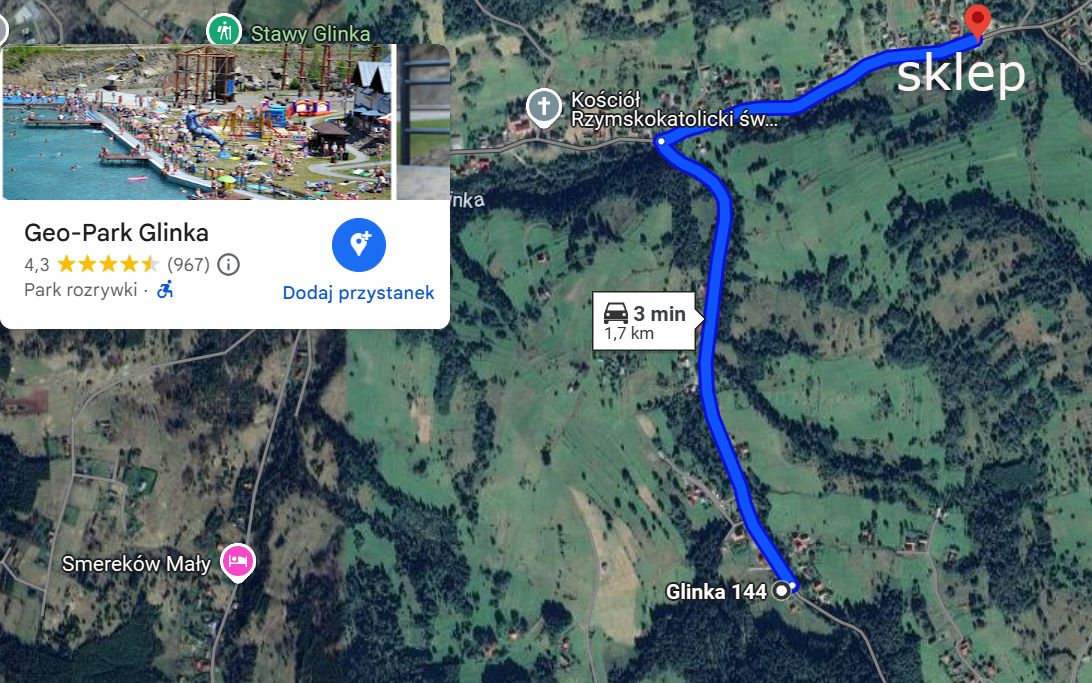 W odległości jednego kilometra znajduje się sklep , przystanek autobusowy , w pobliżu szkoła, przedszkole, restauracje, Kompleks rekreacyjny "Geopark Glinka" a ścieżka rowerowa Velo Soła prowadzi aż do Jeziora Żywieckiego .