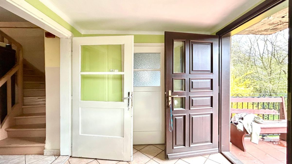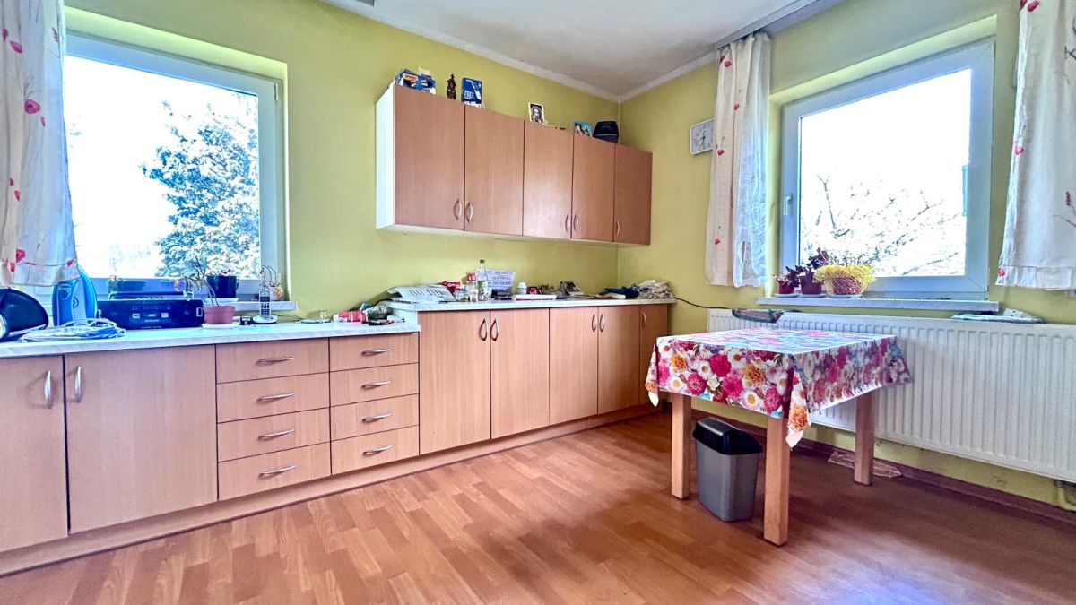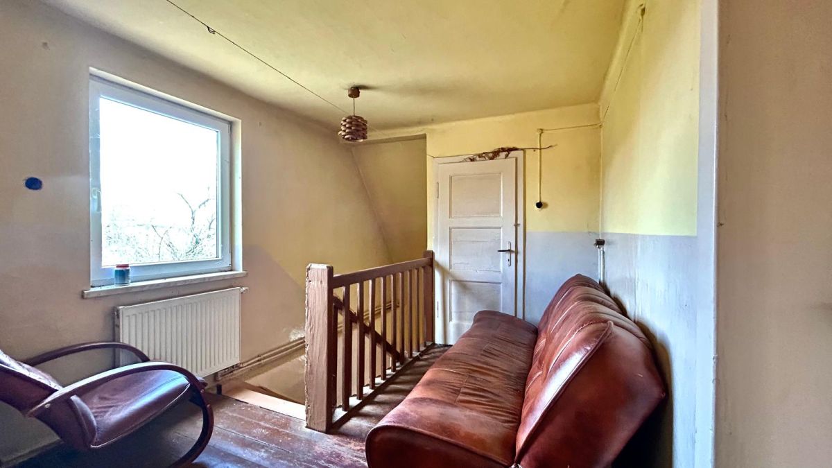 Niewielki dom o powierzchni 90m2 usytuowany jest na widokowej działce o powierzchni 4175m2 (ok.14 arów rolna, reszta budowlana)