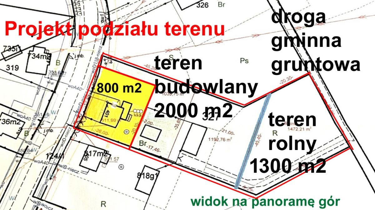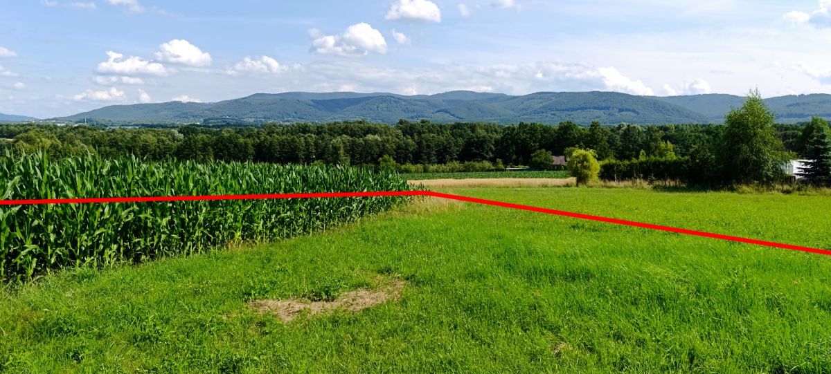 Działka jest bardzo przestrzenna z pięknym widokiem na okoliczne wzgórza i szczyty Beskidów , które stanowią jedną z największych zalet tej nieruchomości.
