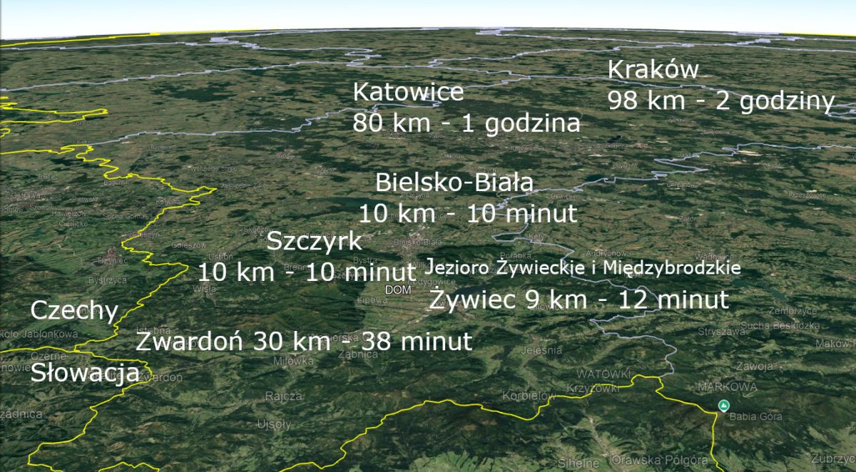 - Trzy sypialnie z widokiem na panoramę Beskidów.