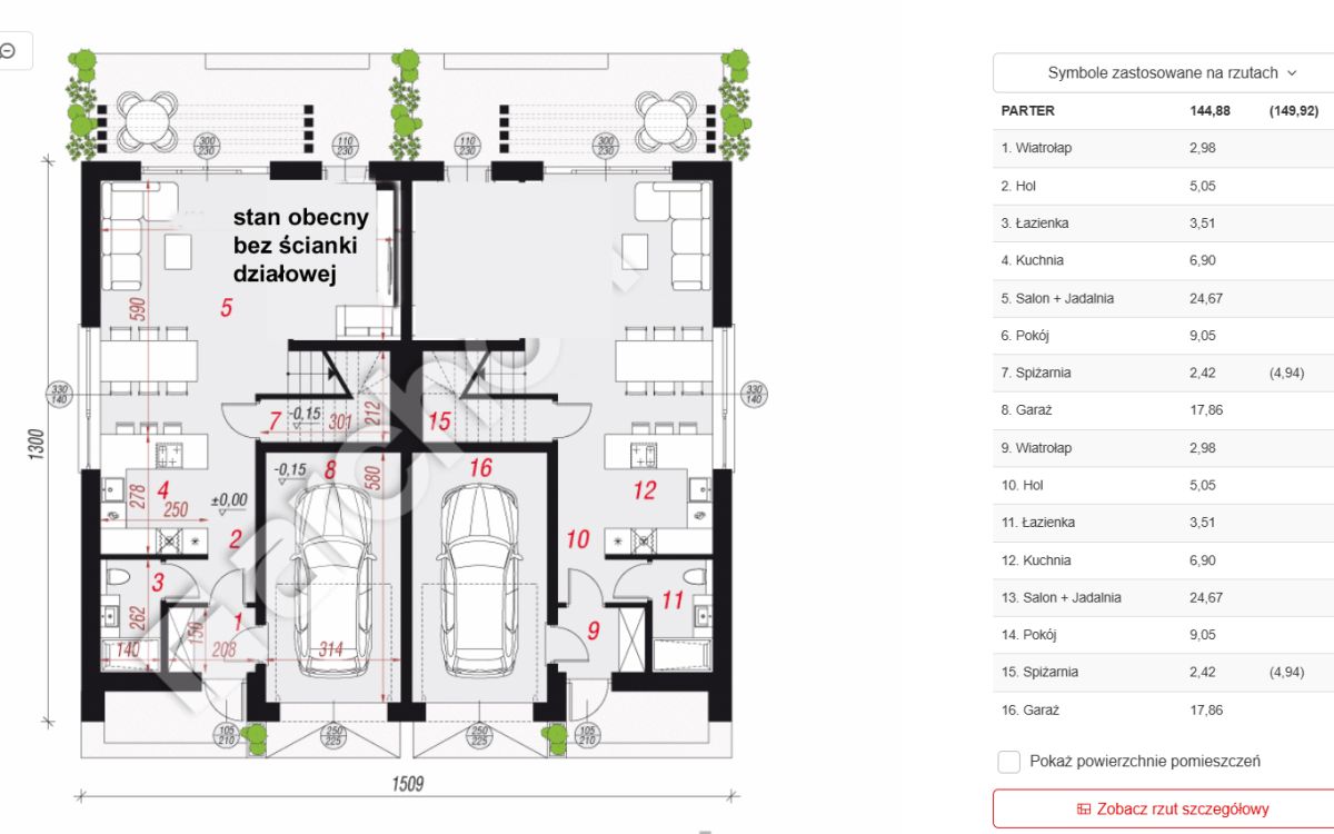 Dom w zabudowie bliźniaczej ( 2 segmenty) każdy o powierzchni użytkowej 146,27 x2 = 292,54 m2.