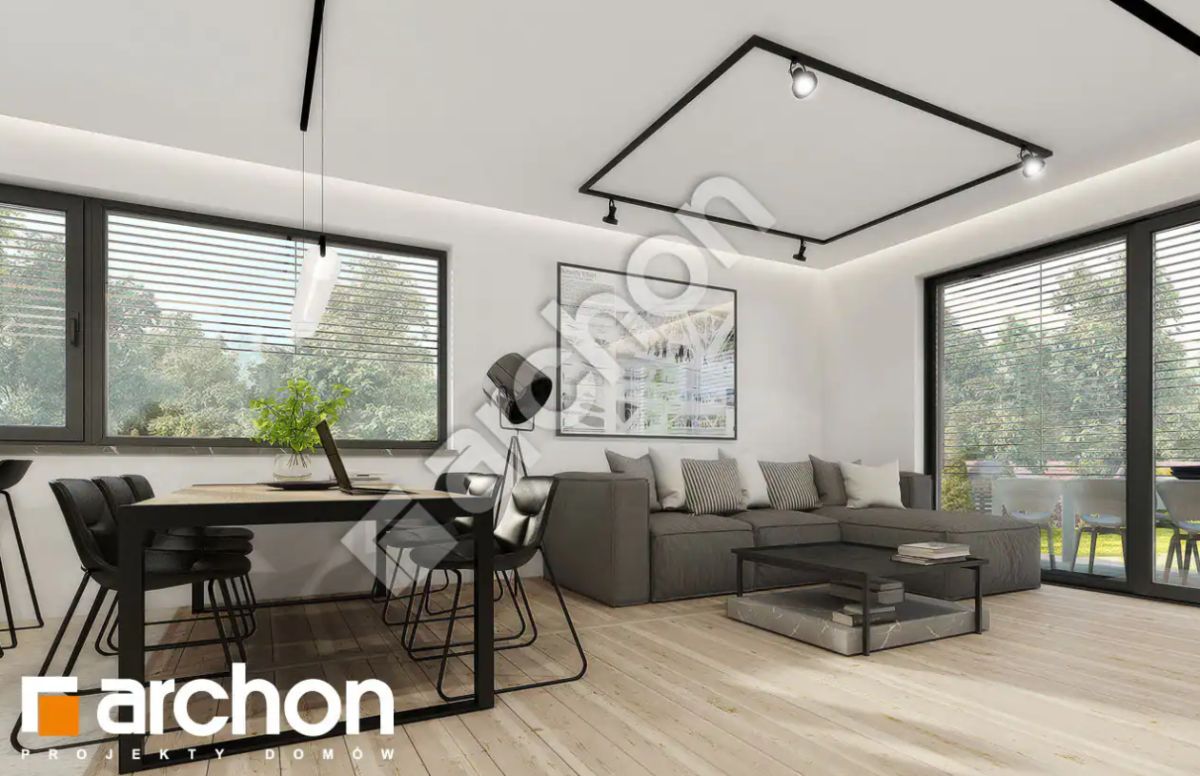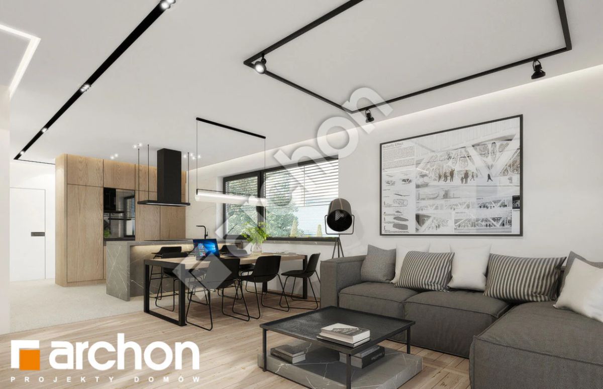 - salon z otwartą kuchnią i jadalnią o pow.31 m2