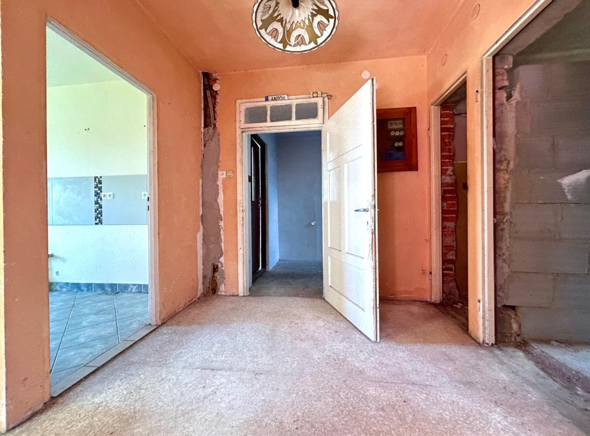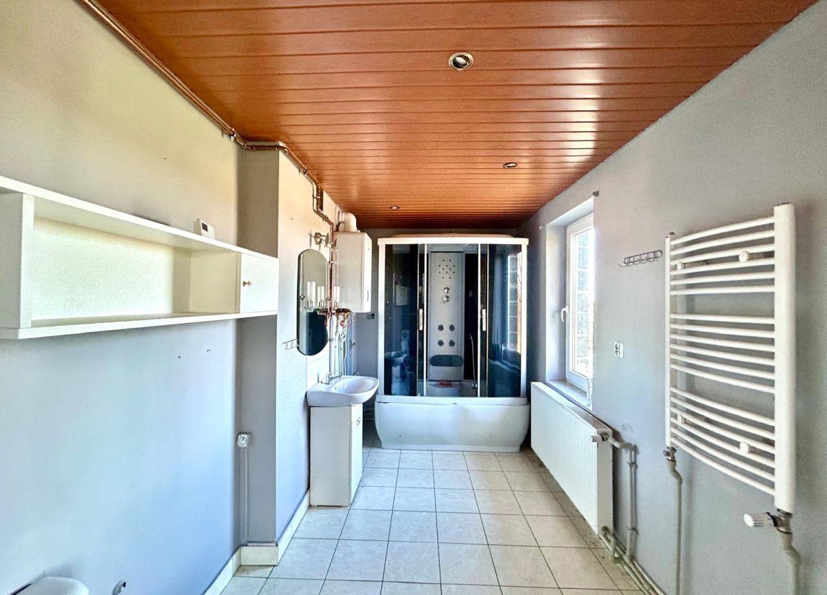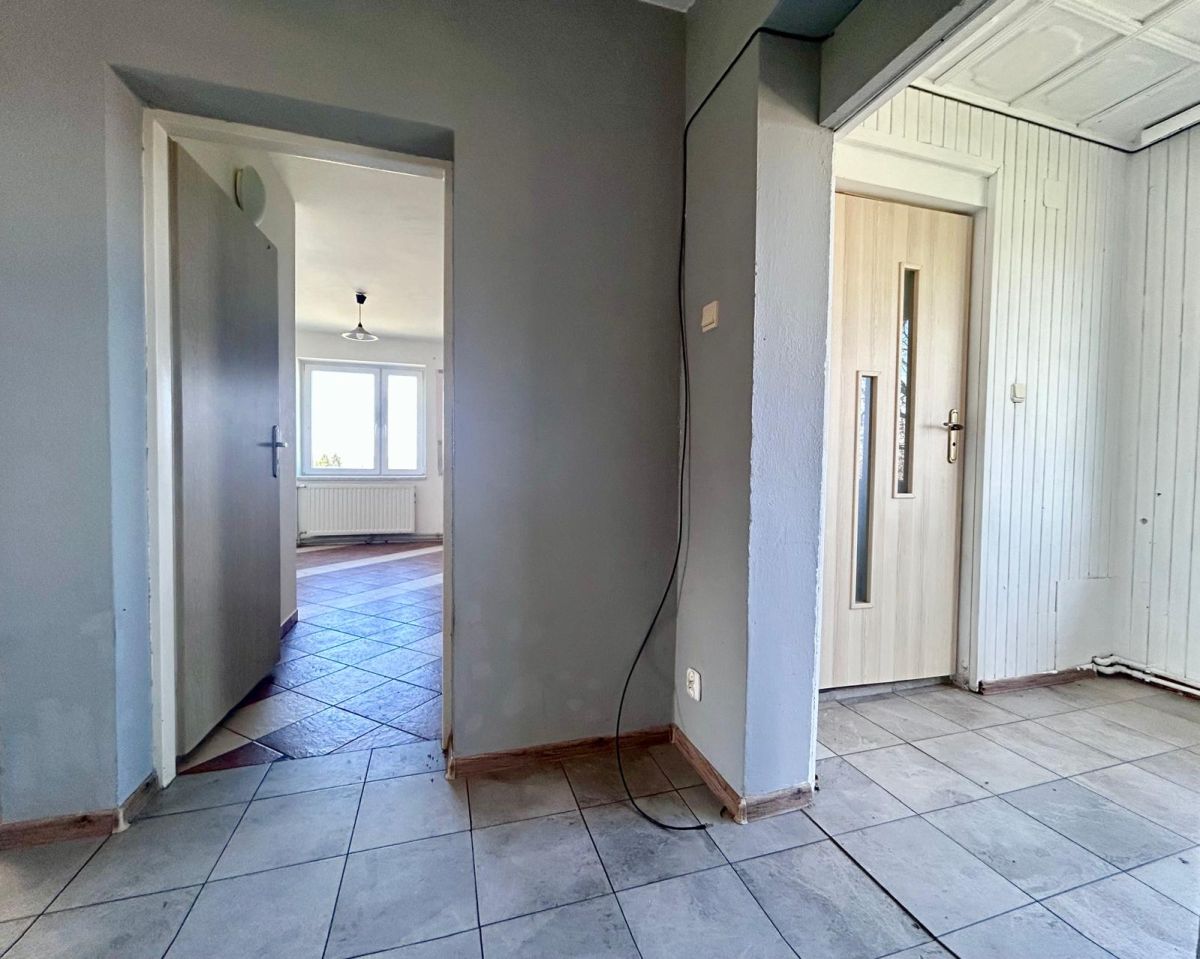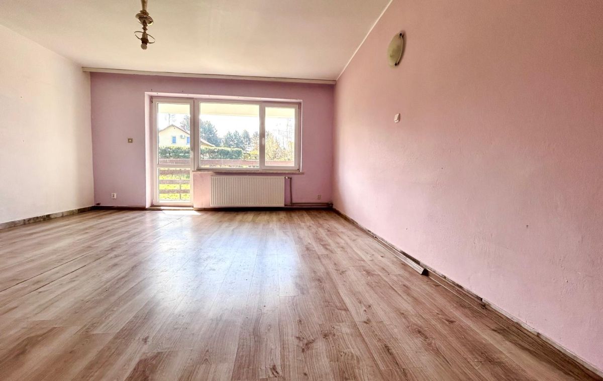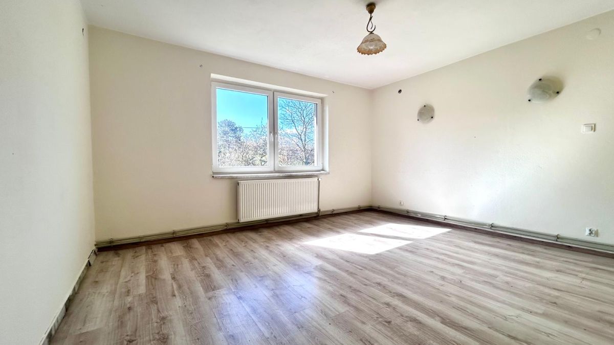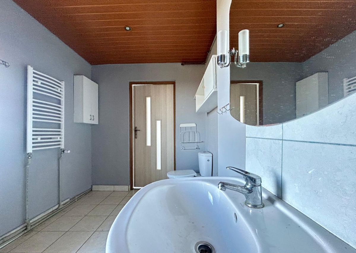 - piętro: przedpokój nr 1 o pow. 7,4m2, przedpokój nr 2 o pow. 7,5m2, kuchnia o pow.10,8m2, duży pokój z balkonem o pow. 24,6m2, (balkon ma pow. 5,3m2), średni pokój o pow. 17m2, mały pokój o pow. 10m2, łazienka z wc o pow. 8,2 m2.