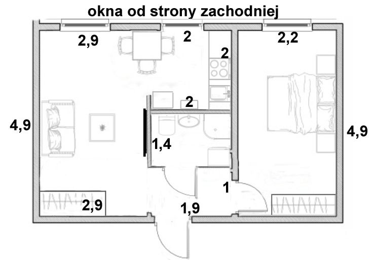 Skład lokalu: salon, sypialnia, kuchnia, łazienka z wc, przedpokój.