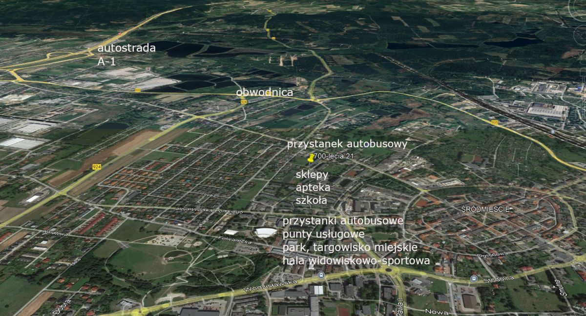 - Autostrada A1 w niedalekiej odległości, umożliwia szybkie połączenia w kierunku północnym (Częstochowa, Łódź) i południowym (Rybnik, Ostrawa granica z Czechami).