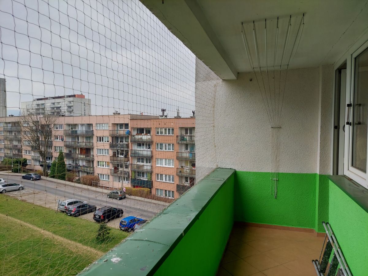 Skład lokalu: salon z dużym balkonem, dwie sypialnie, kuchnia, łazienka, wc, przedpokój.